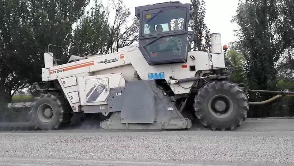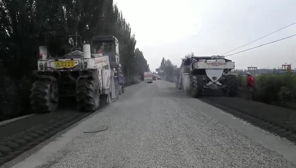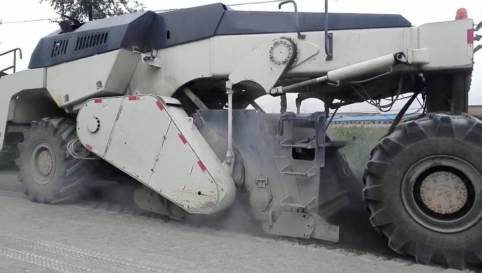 2017年8月,我公司一臺(tái)RZ2300B在山西大同與維特根WR2500同場(chǎng)竟技。該路段為G208國道大同北段,參與施工的RZ2300B冷再生機(jī)是我公司生產(chǎn)的經(jīng)濟(jì)型機(jī)械傳動(dòng)冷再生機(jī),功率為600馬力,雙橋驅(qū)動(dòng)。該型冷再生機(jī)雖然為經(jīng)濟(jì)型機(jī)械傳動(dòng)冷再生機(jī),與四輪升降機(jī)械傳動(dòng)冷再生機(jī)相比,實(shí)際工作效率卻一點(diǎn)也不差。該路段施工的初始500米,其強(qiáng)度近似水泥路面,如果是一般的液壓傳動(dòng)冷再生機(jī)將會(huì)完全干不動(dòng),但我們的RZ2300B經(jīng)受住了考驗(yàn),一分鐘只能跑兩米,對(duì)于機(jī)械傳動(dòng)600馬力的冷再生機(jī),這真是艱苦的工程。后續(xù)的8公里路基強(qiáng)度是標(biāo)準(zhǔn)強(qiáng)度,機(jī)器的施工輕松了許多,后期加入的一臺(tái)維特根WR2500與我們的RZ2300B并肩施工,兩機(jī)器均能跑到7米左右。